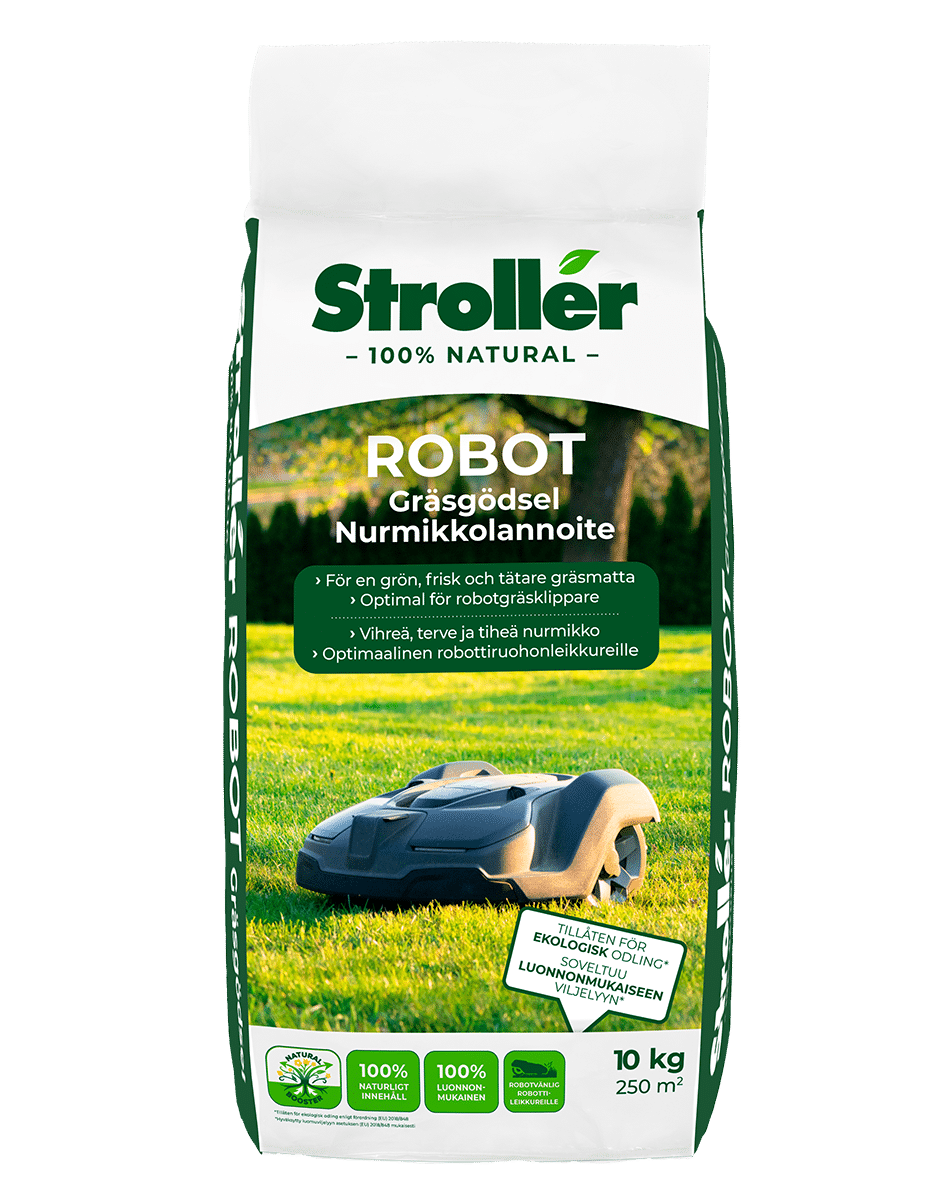 Stroller Robot Gräsgödsel är ett effektivt gräsgödsel med långtidseffekt i upp till 100 dagar. Natural Boostern bidrar till ett snabbt och synligt resultat, samt ger en tät och grön gräsmatta.